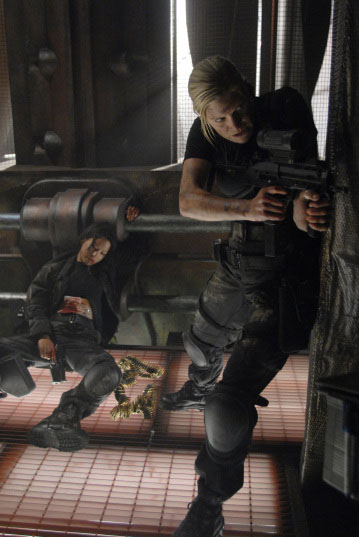 Despite that, Razor is still fun stuff. The season 2 version of Starbuck is a lot more enjoyable to watch, and the interactions between Apollo, Shaw and her make one hope that the writers remember her importance for the final season. Another plus is Michelle Forbes' superb performance, which makes you wish they could somehow bring Cain back. This also has the best special effects of the entire series; having seen them in a theater as well as the DVD, they're just eyepopping. FX wiz Gary Hutzel got a real budget for once and Ron Moore admits that some of his CGI work actually drove parts of the plot rather than the reverse. Considering Moore once said the original Pegasus sets were limited to a corridor, a multi-purpose utility room, the CIC, and Cain's quarters, props to him and his effects guys for figuring out how to make things work around mostly those locations. The DVD is worth buying on this alone.
