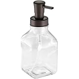 InterDesign Cora Glass Foaming Soap Dispenser Pump, for Kitchen or Bathroom Countertop- Clear/Bronze