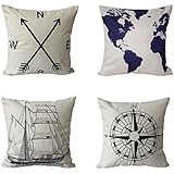 BPFY 4 Pack Home Decor Cotton Linen Nautical Style Sofa Throw Pillow Case Cushion Cover 18 x 18 Inch