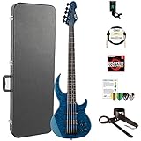 ESP LBB1005QMBLKAQ-KIT-2 Bunny Brunel Signature Series BB-1005 QM 5-String Electric Bass, Black Aqua