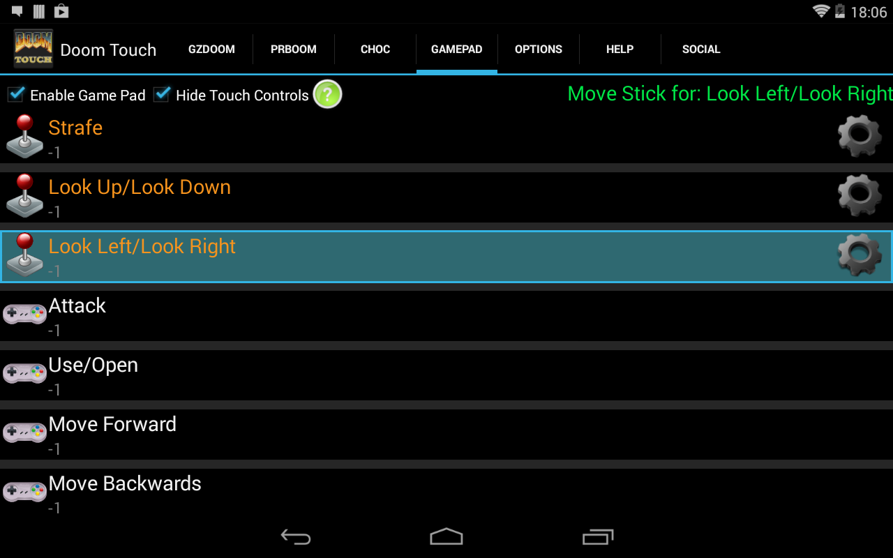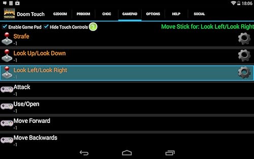 Una maravilla, totalmente configurable, tanto los botones táctiles como la práctica totalidad de gamepads inalámbricos estándar (desde la aplicación en sí, porque dentro de los diferentes source ports, que por cierto están la mayoría de los más conocidos, éstos no detectan algunos de los botones de mis mandos, como los gatillos, sticks... y no puedo configurarlos a mi gusto, o al menos yo no he encontrado cómo hacerlo).