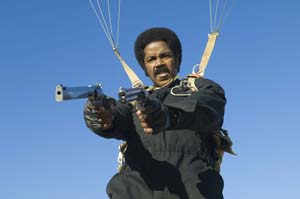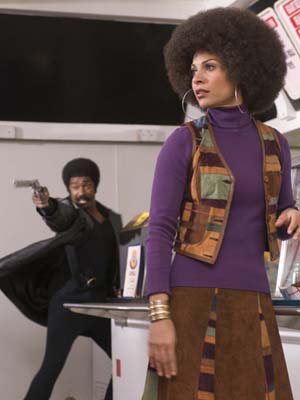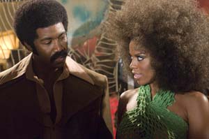 When drug dealers take out his kid brother, ex-CIA agent Black Dynamite (Spawn's Michael Jai White) makes like a karate-chopping dynamo to track them down. Armed with a .44 Magnum, a set of nunchucks, and a sexy 'stache, Big D starts out in the City of Angels, where his buddies Cream Corn (In Living Color's Tommy Davidson), a hustler, and Bullhorn (co-writer Byron Minns), a club owner, offer to lend a hand. The deeper Dynamite digs, the more endangered his life becomes as he uncovers a conspiracy to keep the black man down by flooding the streets with malt liquor and filling the country's orphanages with smack. Since the smooth operator has a way with the ladies, he also enlists Gloria (I Am Legend's Salli Richardson-Whitfield), a socially-conscious soul sister, to aid in his clean-up campaign. Director Scott Sanders and White, who co-wrote the script, collaborated on 1998's Thick as Thieves, and their chemistry shines through. If the supporting cast can be a little wooden, White gives Shaft's Richard Roundtree a run for the money with his cool-cat charisma. Set in 1972, Black Dynamite doesn't just act like a movie from the Superfly era, it looks and sounds like one, too, courtesy Adrian Younge's old-school funk score, Shawn Maurer's 16mm cinematography, a cartoon credit sequence, and some carefully choreographed boom mic appearances. And dig those crazy cameos: Arsenio Hall as Tasty Freeze, Brian McKnight as Sweet Meat, and NBA veteran John Salley as Kotex. --Kathleen C. Fennessy
