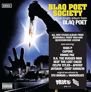While Blaq Poet has chosen to remain out of the spotlight over the course of his long and storied career, there is no disputing his place in the NYC street-hop pantheon. Blaq Poet was first heard at the age of 17, when he released a blistering diss track, "Beat You Down", aimed at KRS-One in 1987 at the height of the "Bridge Wars" (they ended their feud a few years ago by appearing on a track together "Victory") and would later go on to head the group PhD who released their debut effort, Without Warning, (which contained very-early guest raps by Queensbridge notables Havoc of Mobb Deep and Cormega) in 1991 on Tuff City Records. After a series of 12 inch releases and an EP the group disbanded and in 1996 Blaq Poet joined forces with fellow Queensbridge emcees KL, Hostyle and Kyron to create the legendary underground group Screwball, which was quickly signed to Tommy Boy Records. Screwball always endured a very tumultuous relationship with Tommy Boy since their content matter became a source of contention for the label, as both of the group s singles, "Who Shot Rudy", (aimed at then NYC Mayor Rudy Giuliani) and "F.A.Y.B.A.N." (which is still regarded as one of the most clever Hip-Hop acronyms) created a huge firestorm leading up to the release Tommy Boy Records debut, Y2K, in 2000. Controversy aside, Y2K made an immediate impact on the Queensbridge scene, as the group s unabashed detailing of NYC's grimy underbelly was backed by legendary producers such as Marley Marl, DJ Premier, Pete Rock and Biz Markie, and included appearances from fellow Queensbridge artists Mobb Deep, MC Shan, Cormega, Nature, Capone and Big Noyd. Screwball severed ties with Tommy Boy and released their sophomore effort, Loyalty, on Landspeed Records in 2001 - an effort that included production from Ayatollah and The Beatnuts and appearances from M.O.P., Kool G. Rap, Noreaga, Cormega, Nature and Tragedy Khadafi; and was paced by the grim single "Torture" and the furious title track After the group endured the passing of KL due to an asthma attack in 2008, Screwball disbanded and Blaq Poet went solo and signed a deal with DJ Premier's Year Round Records label where he released Tha Blaqprint in 2009 on which all but two of the LP's 15-tracks were produced by DJ Premier. While still very much affiliated with DJ Premier's Year Round Label (Poet appeared on two-tracks from Premier's 2010 LP DJ Premier Presents: Year Round Records- Get Used To Us) Blaq Poet has aligned himself with Brick Records for the release of his forthcoming solo-LP, Blaq Poet Society, which will be released on 6-21-2011. Blaq Poet Society is a meeting of the minds of Blaq Poet and producers Stu Bangas (Reef the Lost Cauze, Termanology, Heltah Skeltah, Vinnie Paz, Apathy, Sha Stimuli, Chino XL) and Vanderslice (Stat Quo, Apathy, Roc Marciano, Termanology, Cashis) that, after a brief exchange, was three-years in the making. As Stu Bangas clarifies- "I was in contact with an associate of Blaq's for a few years, we reconnected again in late 2008 and I asked him to get in touch with Poet for a mixtape I was working on. He talked to Poet, relayed I was interested in working with him and vouched for me and I ended up going to Long Island too shoot a video for a joint Poet hopped on that I produced in 2009. When I got back to Boston, I decided I wanted to work on an album with him and we decided to move forward with it. I reached out to my partner Vanderslice and he was excited to contribute production as well. The type of beats Vanderslice and I excel at are big sounding, gangster s%#t, the type of sound Poet excels over. Now two- years later here we are with Blaq Poet Society, the result of our efforts."