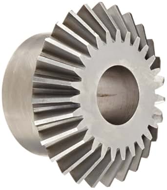 This steel Boston Gear L series miter gear has a 20 degree pressure angle (PA) and a straight miter to transmit torque between perpendicular shafts to provide rotational power to another part of a motorized system. This gear has a plain bore, is made of low carbon steel (.2 percent carbon), and has unhardened teeth for 1:1 gear ratio applications where hardness and strength are not needed to transmit torque and motion. The 20 degree pressure angle provides a lower contact ratio between gears than a 14.5 degree pressure angle, resulting in higher load capacity. This gear is intended for use only with identical gears because miter gears can mesh only with gears that have the same pressure angle, number of teeth, and diametral pitch (number of teeth per inch). This Boston Gear miter gear is suitable for use in a variety of commercial and industrial applications, such as construction equipment, aeronautics, conveyors, and manufacturing equipment, among others.