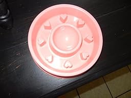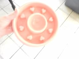 I have a toy poodle and and she likes to eat really fast which is not good for her so I ordered this bowl to try and see if it would sow her down. This bowl is made of ABS food safe plastic and is just the right size for her. It is bite resistant and the plastic is pretty thick so it's not flimsy made like some food bowls. I filled this bowl with her food and she had to really get in there to get her food because it has little plastic hearts that stick up and the food goes in between them. It definitely slowed her from eating too fast and I am very happy about that. Her old food bowl held about the same amount of food as this one but she would eat it in just a few minutes and didn't even seem like she was chewing her food but now she more time to chew in between eat bite because she has to use her nose and root around the heart shapes. I love that this bowl comes in pink with hearts because my dog is a girl and she is princess to me and this bowl is just adorable. This is a great food bowl that will slow them down and keep them from eating to fast which isn't good for them and I am very satisfied with the quality.