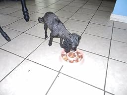 It is a super cute dog food dish but it is a lot smaller than I thought it would be and that it looked like in the picture. I think it is great for our little whinier dog. My mom has a pug and and she has a harder time getting the food because her face is flat.