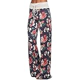 Kimloog Women Print High Waist Long Casual Drawstring Wide Leg Pants Straight Yoga Sports Trousers (L, Dark Blue)