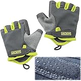 Eloiro Half Gloves, Men/Women Light Breathable Nylon & Faux Leather Anti-Slip Shock-Absorbing Grip w/ Velcro Strap for Sports & Workout-Fishing, Racing, Cycling, Skating, Climbing Green & Grey, Size L