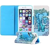 Eloiro Apple iPhone 6 Plus / iPhone 6s Plus Case, Premium PU Leather Card Pocket Wallet Case Protective Hard Case Magnetic Detachable Slim Flip [Kickstand] Cover for iPhone 6Plus / 6sPlus - Elephant