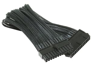 I'm VERY impressed by NZXT's line of pre-sleeved extension cables. I just bought this 24-pin extension because the one on my OCZ PSU wouldn't reach the connector while routed behind the motherboard. Each wire on this cable is sleeved individually, making for a very nice look. They're solid black -- no cable colour leaks through like you find on many different brand PSU cables that come sleeves.