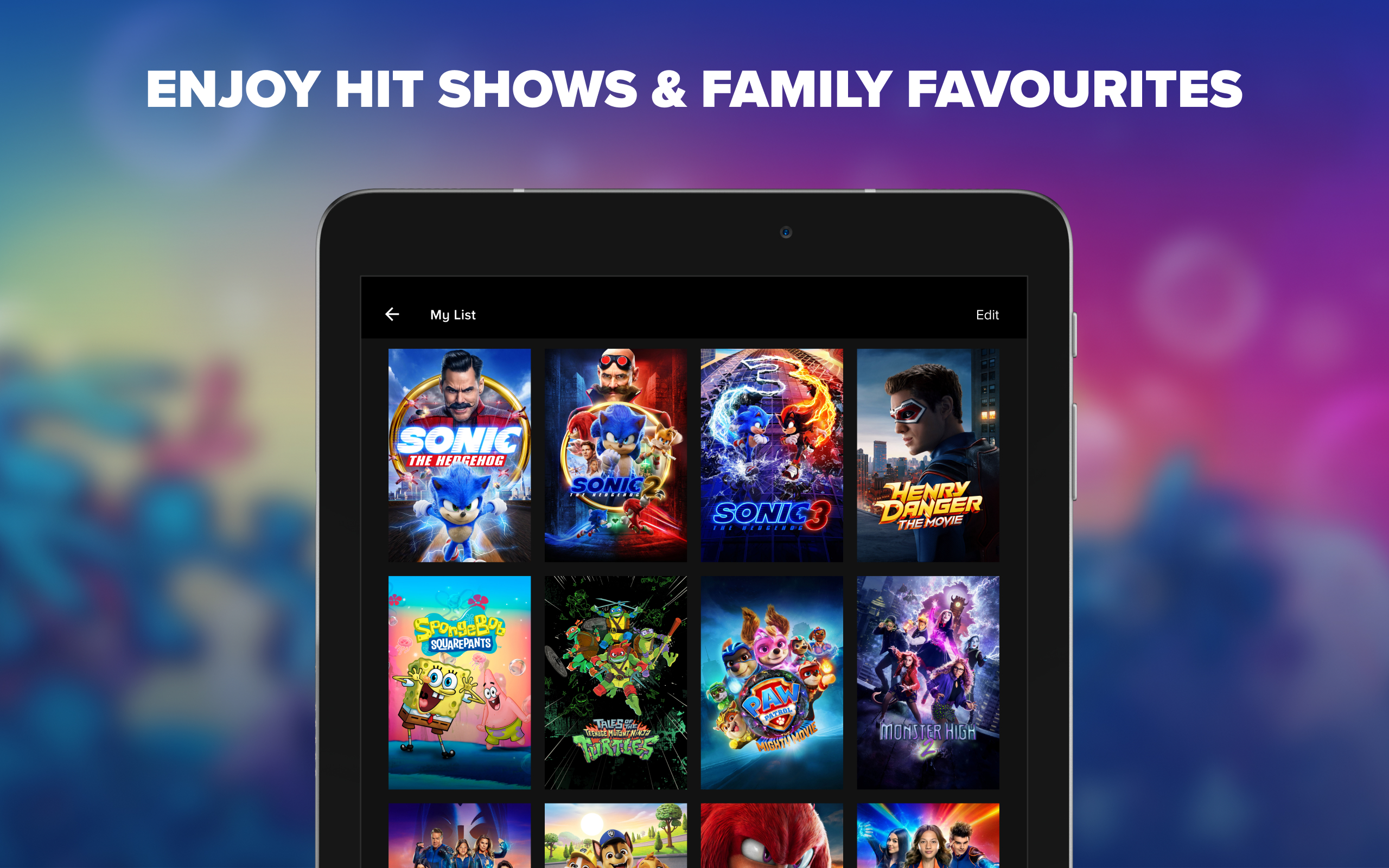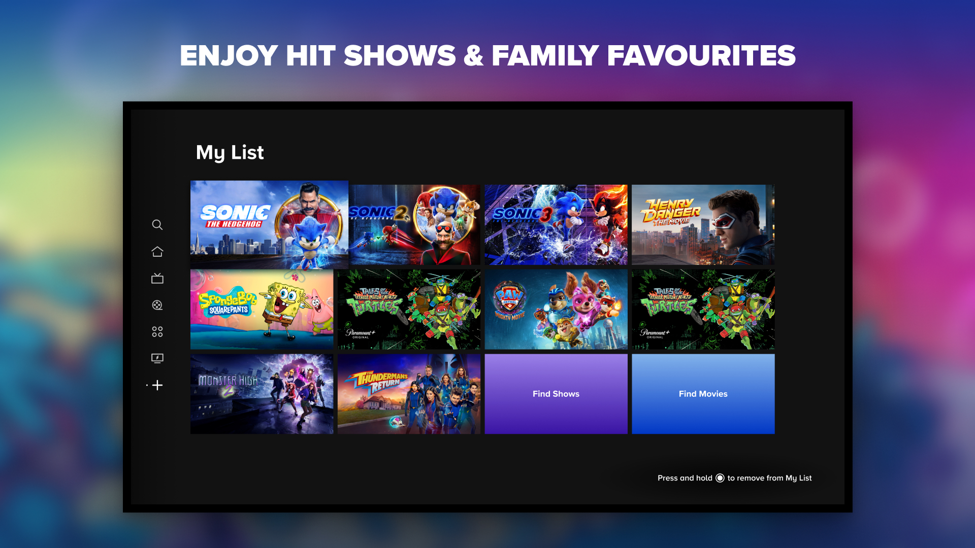 Family-friendly entertainment with much-loved characters and something for all age-groups. Kick back with the kids and have great times together, or let them watch without you worry-free, thanks to our parental controls and separate profiles. Enjoy Paw Patrol: The Mighty Movie, Henry Danger: The Movie, Tales of the Teenage Mutant Ninja Turtles, Monster High, SpongeBob SquarePants and more.