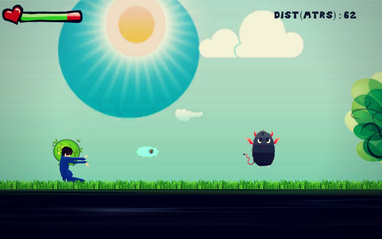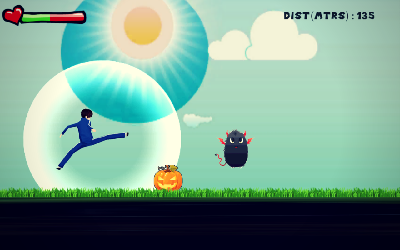 Dangerous Pumpkin Monsters will Try to make blast on you, Black Vampire will try to Touch and Suck you, Fire Monster will try to Hurt you with Red Hot fire balls.But you are an iNCREDIBLE jOGGER, with Incredible Will-Power to Run to maximum distance destroying unwanted activities created by Demons.