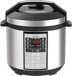 Unlock IndicatorBe notified when your pressure cooker is not properly locked. Gather AroundCreate a family style Hot Pot ideal for fondue that everyone can enjoy at dinner parties and special get-togethers. Hit the Pasta/Boil function to cook pasta al dente, or Saute/Brown to pan-fry or simmer foods inside. Customizable ProgramsCreate a custom setting for each cooking program by adjusting the temperature, pressure, and cooking time. Intuitive ControlsDesigned so you can create your culinary masterpiece with ease. Quick AdjustmentsAdjust your cooking settings on-the-fly, even if you've already started cooking. Micro Limit Switch ProtectionWatches to ensure your lid is sealed and secure. Fahrenheit or Celsius Readings (F/C)Simultaneously press - and + to switch between Fahrenheit and Celsius. Modern ExteriorFingerprint-resistant brushed stainless steel housing that fits in any kitchen setting. Product Details CUSTOM SMART CONTROL PROGRAMS: Third generation Cosori pressure cooker features 6 new Custom Smart Control Programs, improved performance and steam technology UPGRADED FEATURES: Unlock indicator; micro limit switch protection; custom cook times; Fahrenheit or Celsius readings (F/C); 6 different pressure levels, adjustable temperatures, and 2 manual cooking modes. Now includes Pasta/Boil and Hot Pot programs. All settings ready to go ONE POT with 6 COOKING FUNCITONS: Bake, Saute and Brown, Boil, Steam, Slow Cook, and Pressure Cook. Use it as a Slow Cooker, Rice Cooker, Sau...