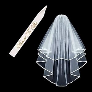 - This Pack Includes - 1 X White Double Ribbon Edge Center Cascade Bridal Wedding Veil with Comb(29" Double veil with 2 inch clip). 1 X Gold stamp bride to be letters Satin Sash(Size:156CM / 61.4“×9.5cm / 3.7”)