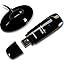 The desktop stand for the USB-form factor adapter is solid and appreciated, as it makes it easy to position the adapter for a desktop computer. The stand and adapter are glossy black, with a blinking blue light showing operation.