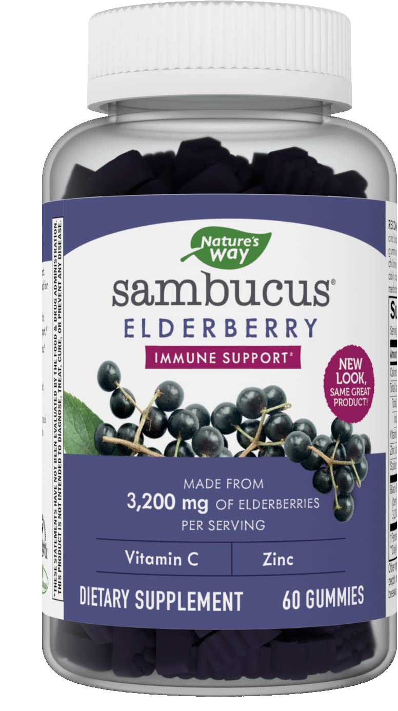 Nature's Way Sambucus Elderberry Gummies with Vitamin C and Zinc for Adult, Immune Support*, 3200 mg, 60 Count