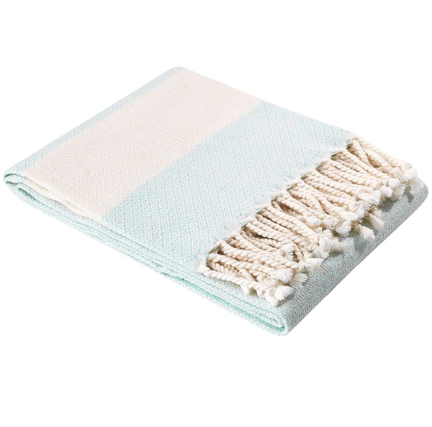 Turkish Towel 100% Cotton Peshtemal Towel Travel Camping Bath Sauna Beach Gym Pool Blanket Gift Quick Dry Towels (Beach Towel, Aqua)