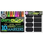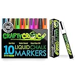 Crafty Croc Liquid Chalk Markers, 10 Pack of Neon Chalk Pens, For Nonporous Chalkboards, Bistro Boards, Glass and Windows