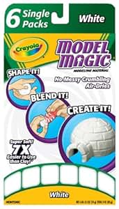 The easy-to-use Crayola Model Magic Single Packs feature soft and easy-to-use Model Magic Modeling Compound, which allows children to create, explore, and imagine. Model Magic is is soft and pliable and can be used over and over again. Packaged in six half-ounce pouches for convenience, this non-toxic modeling compound air dries to a smooth, paint-ready finish without crumbling.