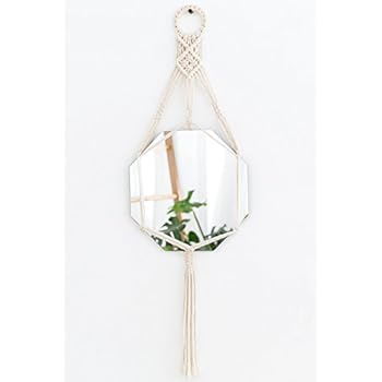 Mkono Hanging Wall Mirror with Macrame Hanger Home Decor