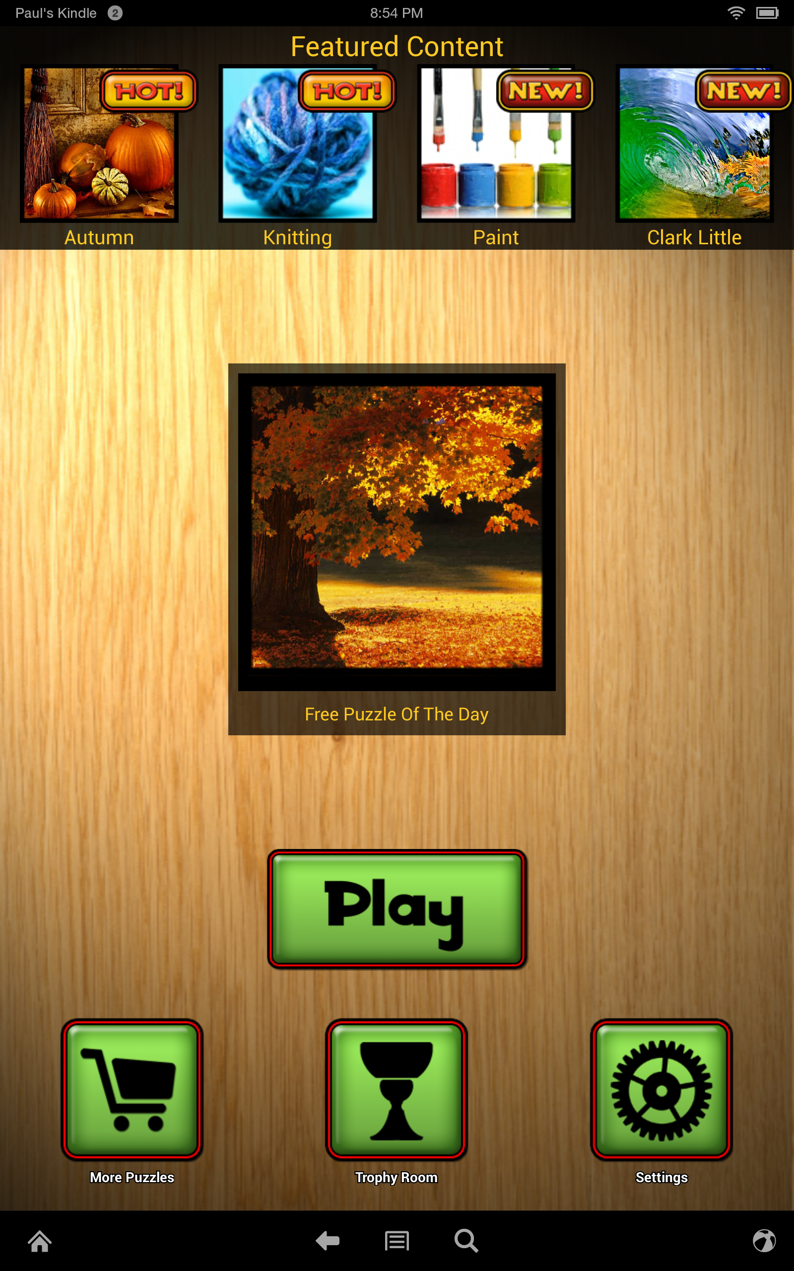 Just Jigsaws—the best with four storage áreas to sort your pieces, ability to zoom, and choice of shape and number of puzzle pieces. You earn coins by completing puzzles; you get 40 free coins just for logging in, and you can create your own puzzle, one free every day. You can also buy coins, and I highly recommend the introductory deal of $5 for 15,000 coins. Oh! You also can get a bunch of free coins by trying out their other free games. And don't forget you can buy them with Amazon coins that you also get for free when you log in every day. I love JUST JIGSAWS!