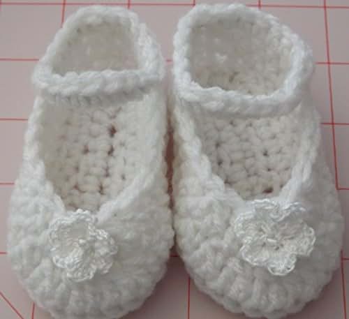 Crocheted Baby Booties, 3 - 6 months, White, Mary Jane Style