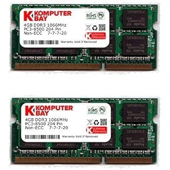 • Crucial 8GB Kit (4GBx2) DDR3 1066 MT/s (PC3-8500) CL7 SODIMM 204-Pin Notebook Memory Modules CT2CP51264BC1067