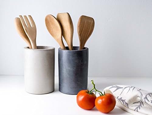 The Culinarium Concrete Utensil Holder / Wine Chiller is cast from our proprietary blend of air entrained concrete which has superior thermal qualities that will keep your wine chilled longer! All of our products are entirely crafted by hand in the Charlston SC. Culinarium Concrete Kitchenwares are carefully cast by hand for about a week and then burnished with our own FDA approved sealer. Unconditional Lifetime Guarantee. Concrete displays natural variations as it cures. Concrete will develop a warm patina as it ages.