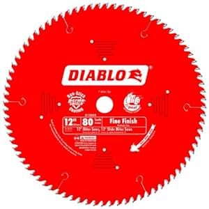 For a clean-cutting blade that creates smooth finish cuts in material such as veneer plywood and delicate hardwood, look no further than the Freud D1280X Diablo 12-Inch Fine-Finish Saw Blade. This is your go-to blade for slicing through oak, pine, melamine, veneer plywood, and delicate molding. This blade's high tooth count minimizes grabbing of the workpiece, producing cuts that require little to no sanding. For strong, long-lasting resistance, the blades feature a tough steel plate and high-density carbide tips.