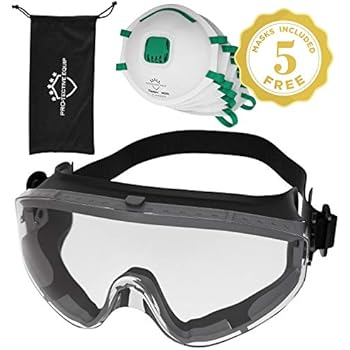 Safety Goggles Over Prescription Glasses Clear Anti Fog Safety Glasses Eye Protection For Chemistry Lab Splash Proof, Construction, Woodworking Multiuse ANSI Z87.1 Approved N95 Safety Masks Included
