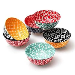 DOWAN Ice Cream Bowls Set of 6, 10 OZ Small Dessert Bowls, Ceramic Bouillon Cups, Colorful Decorative Bowls for Snack, Dip, Side Dishes, Dishwasher & Microwave Safe