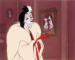 The villain, Cruella is an absolutely amazing creation. Her driving skills, the car, and her characterisation are all fantastic and the scene near the end where she is driving after the lorry with the pups in it is absolutely fantastic. Some of the puppies, especially Rolly, are also memorable. Some other great characters are Sergeant Tibbs and the Colonel.