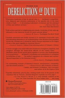 Dereliction Of Duty covers the story in strong narrative fashion, focusing on a fascinating cast of characters: President Lyndon Johnson, Robert McNamara, General Maxwell Taylor, McGeorge Bundy and other top aides who deliberately deceived the Joint Chiefs of Staff, the U.S. Congress and the American public.