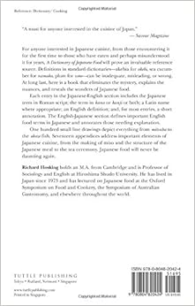 A Dictionary of Japanese Food: Ingredients and Culture, by Richard Hosking, is the essential guide for creating your own Japanese kitchen and buying food at your closest Japanese center. For those of you who appreciate Japanese culture and foods but are confused navigating the market, this book is a must. Hosking lists, both in english and Kanji, all of the essentil ingredients and spices you need to cook. In addition, his appendices contains excellent information about utensiles, chopsticks, the meal, sake, tea, and wasabi to mention a few. I bought this book in Japan, used it there, and will carry it with me to my market in Denver.