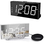 Digital Alarm Clocks for Bedrooms and Mirror Alarm Clock with Bed Shaker, Super Loud Alarm Clock with Bed Shaker Bundle Dual Alarm Clock with Large LED Display, Adjustable Brightness$40.99$40.99 $46.98$46.98This bundle contains 2 items -