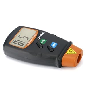 Measures the rotational speed with a visible red light beam from a powerful LED. It is a great tool to measure the RPM of motors and machine parts. In wood and metal working it can be used to accurately measure the speed of a lathe or milling machine. Can be used for HVAC applications in measuring fan speed. Detection distance up to 6 feet. Highly accurate, digital laser photo tachometer. To take the measurement, apply a reflective mark (included in package) onto the target object, aim the laser beam at the mark, the RPM displays on the LCD screen. Powered by 1 x 9V Battery (not included). Size : 180 x 72 x 37 mm(7.0 x 2.8 x 1.5 inch).