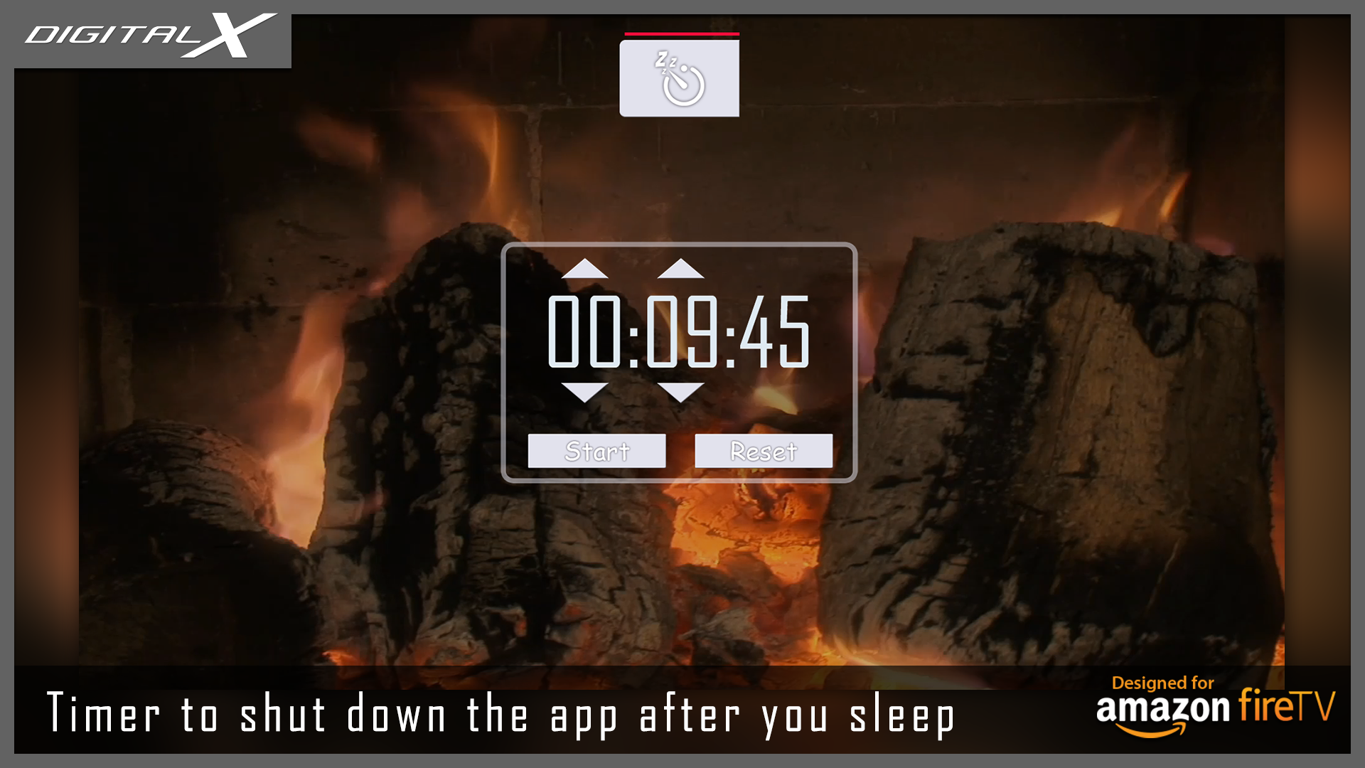 It doesn't time out like the other fireplace sound apps. We can leave it running for hours. The sound is perfect! Not too roaring and not too much crackling like a forest or house fire. Just soothing and peaceful sound of a nice fire. We have large electric fireplace and we simply placed a Bose wireless speaker behind the unit and run the app from our HD Fire. No mess to clean up and no running to the store for logs to burn.