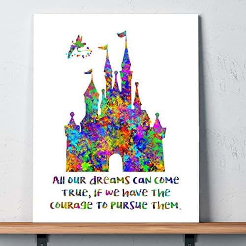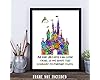 Disney Castle - Dreams Can Come True Splatter Watercolor 11 x 14 Wall Art Sign Plaque