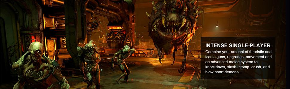 Created in conjunction with Triforce, the DOOM Collector's Edition includes an exclusive, fully-realized 12" tall collector's statue of one of DOOM's most iconic demons: the Revenant. Made of high-quality PVC and modeled from actual in-game 3D files, the Revenant stands on an LED-lit base with internal, slow-spinning turbine from the UAC facility on Mars. The DOOM Collector's Edition also includes the highly-anticipated game, packaged in an exclusive metal case.