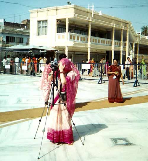Katherine Russell Rich in the Ancient Fort City of Chittogarh Rajasthani Ektara Player Katherine Russell Rich in Sari and Bindi
