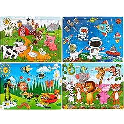- LEARNING TOYS: 4 Pack of Kids Puzzles--Farm, Planet, Animal, Insect. Each theme contains 60 Pieces, with detailed bright colors and adorable pictures on it. Puzzles help to train the baby's constructive thinking and imagination, develop hand-eye coordination, cognitive and fine motor skills.