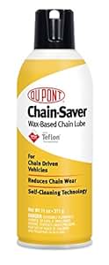 DuPont Chain-Saver with Teflon Fluoropolymer is a patented self-cleaning, dry-wax lubricant that is safe on rubbers, plastics and O-rings. Wax film works to repel dirt, dust, paper, grass and other contaminates. Helps chains last up to 5 times longer. Formulated with Teflon for longer lubricant life, enhanced wear protection, better high and low temperature range and increased resistance to water. Lubricant withstands up to 300 Degree F. Best for lubricating motorcycle O-ring chains, industrial chains, cables, conveyors and even general purpose items like hinges and sliding doors.