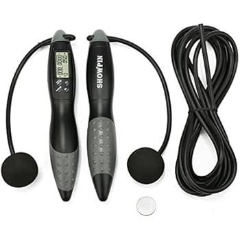 Showpin Jump Rope Digital Counting Calorie Counter Jump Rope,Indoor/Outdoor CrossFit/Workout Skipping Ropes,Alarm Reminder Weight Setting,Battery Included