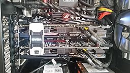 It's exactly what I'd wanted to replace the flimsy ribbon cable connector. Lights up bright. Comes with filters for blue, green or red as well. I have a pair of EVGA 980ti, with space in between for a 3rd, should I want it. I did it this way as I am able to use gen3 x16 in both slots with my EVGA x99 Classified motherboard; and it allows room for the cards to breathe.