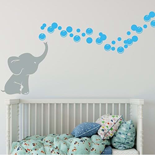 Elephant Bubbles Vinyl Wall Decal with Grey Elephant and Light Blue Bubbles makes a great baby shower gift, nursery room decor
