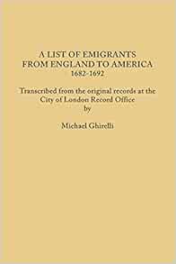 A List of Emigrants from England to America, 1682-1692. Transcribed from the original records at the City of London Record Office by courtesy of the Corporation of London Paperback – October 18, 2014