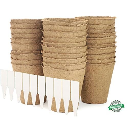 Seed Starter Peat Pots Kit | Germination Seedling Trays are Biodegradable and Organic | 10 Plastic Plant Markers Included | 5 Pack - 50 Cells