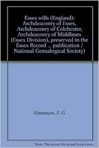 Essex wills (England): Archdeaconry of Essex, Archdeaconry of Colchester, Archdeaconry of Middlesex (Essex Division), preserved in the Essex Record ... publication / National Genealogical Society) Paperback – January 1, 1982