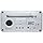 This radio has built-in, 3.5-millimeter auxiliary line-in and audio line-out jacks for connecting an MP3 or CD player, and/or a set of headphones or additional speakers, as well as an AC power jack for connecting the included AC power adapter. The ES 100 utilizes an external aerial connection socket, a single-channel amplifier, and a three-inch, full-range, magnetically-shielded, high-fidelity front-firing mono speaker that is capable of producing incredibly powerful, distortion-free room-filling sound. The FM antenna is a chrome-plated telescoping aerial with a 360-degree swivel and rotation, while the AM antenna is a built-in loop. This radio has rubber feet on the bottom to prevent surface scratches, and includes a battery back-up that stores real time during a power failure and requires two AA batteries (not included). This Eton Sound 100 AM/FM radio comes in silver, weighs 2.82 pounds, measures 8.27 x 4.53 x 5.1 inches (W x H x D), and is backed by a manufacturer's one-year warranty.