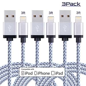 EverDigi 3Pack 3FT Lightning to USB Cable, Premium Nylon Braided Charging Cable Cord Compatible with iPhone 7/7 Plus/6/6s/6 plus/6s plus, iPhone 5/5s/5c,iPad, iPod & More (White)
